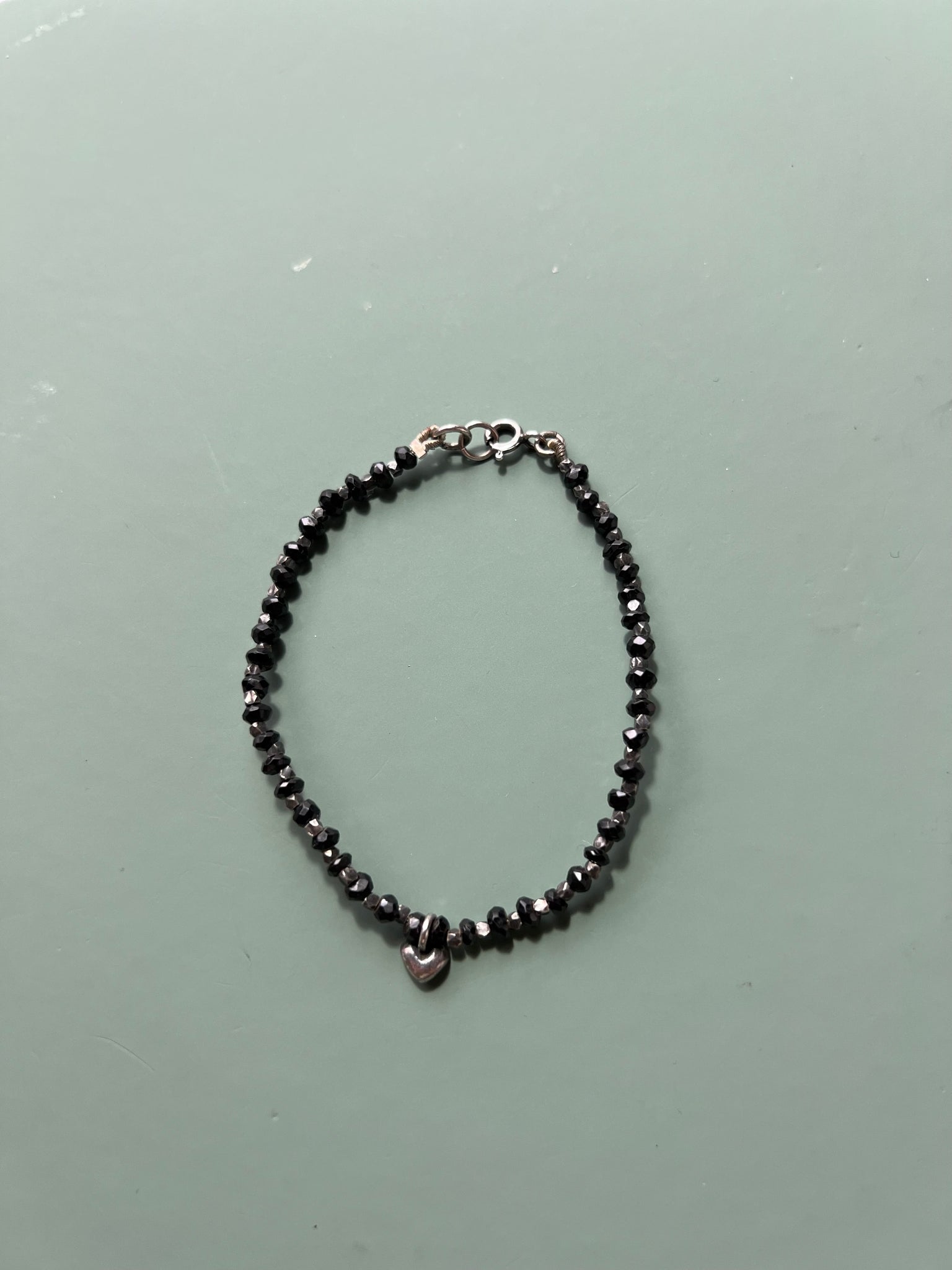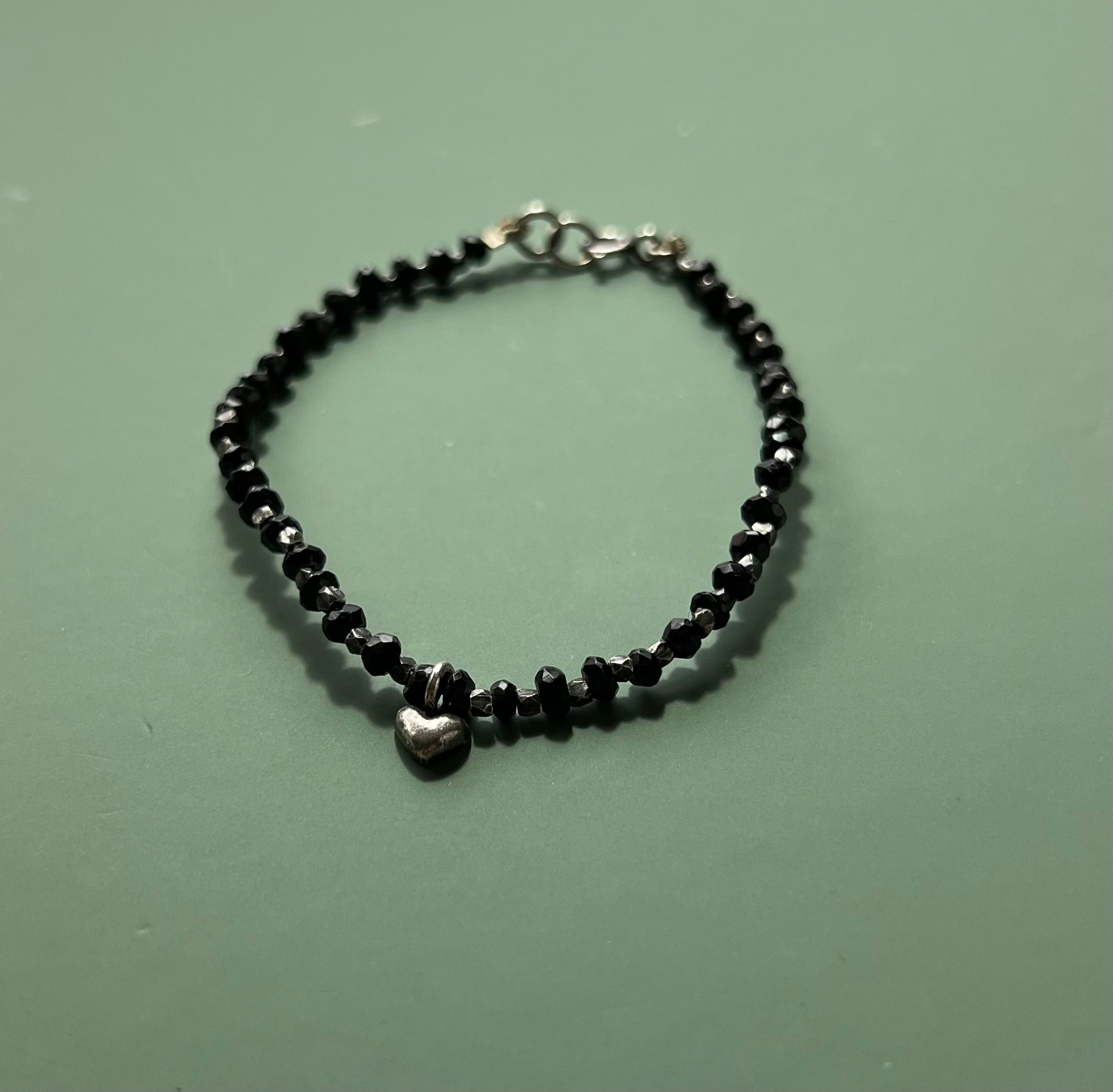 Handmade Tiny Heart Black Spinel Bracelet ~ Oxidised