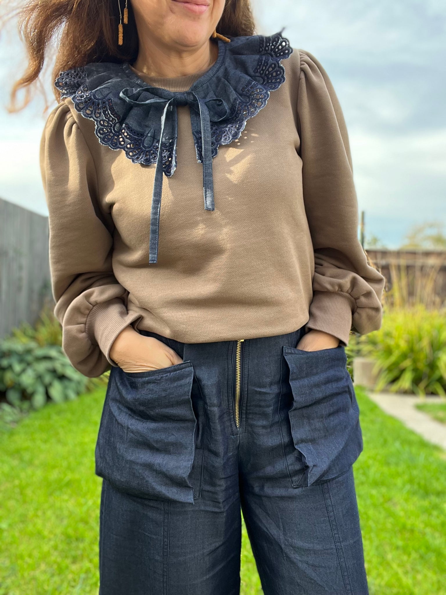 Jo’s Style Tip…ok you know I am a big advocate for using accessories to elevate your outfit. But it can also help you really stamp your personality on your outfit and helps you tailor your look to your lifestyle. I've been thinking on making these collars for a while and the first one has finally come to life. Use to dress up a t-shirt or sweatshirt or style over your fav cosy jumper just to elevate the look.